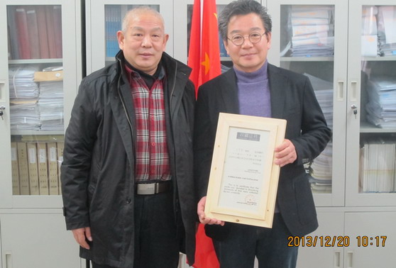 院长张志民为檀国大学王亨烈教授颁发收藏证书