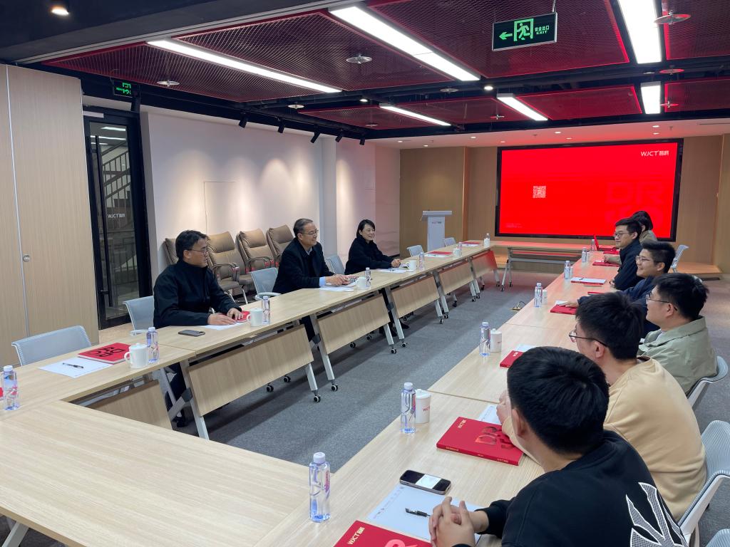 王洪禹一行参观了吾将文化科技集团的产品展示区、智能硬件专利区和办公区,详细了解了吾将集团的业务开展情况,对吾将取得的成绩表示欣慰和肯定。王洪禹向校友介绍了学校教育教学、科学研究、艺术实践、党的建设和人才培养等方面情况。他表示,学校是广大校友的坚强后盾,校友是学校的宝贵财富,希望能以本次“访企拓岗”为契机,充分发挥各自优势,与校友企业开展更广泛、更深入的合作,不断拓展校企合作的深度、广度,在促进校友企业良性发展的同时为毕业生更高质量就业提供有利条件。