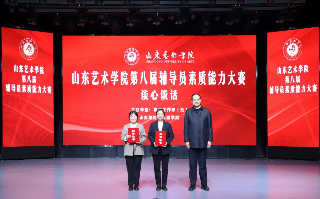 12月19日至12月23日,我校第八届辅导员素质能力大赛在长清校区举行。学校党委书记王洪禹,党委副书记杨西国,党委委员孔宪坤出席颁奖典礼并为获奖辅导员颁奖。大赛由学生工作部(处)主办、戏剧学院承办,来自兄弟院校的特邀专家和我校相关职能部门负责人、各二级学院党委(党总支)书记担任评委。各二级学院推荐的24名辅导员参加比赛。