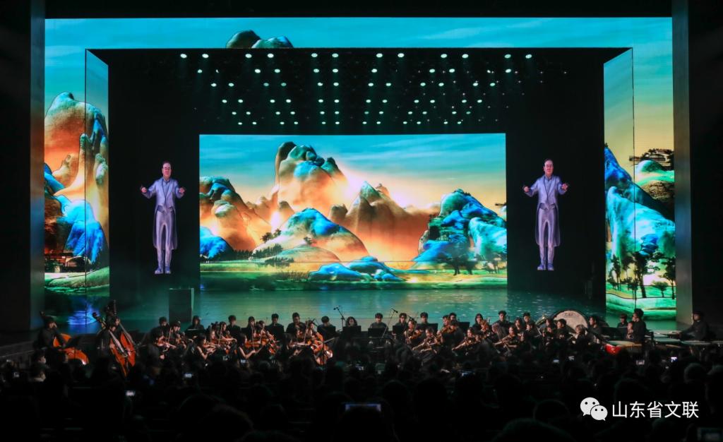 2024年1月1日晚,山东省文联举办乐享AI 悦动未来——2024山东新年文艺晚会音乐专场,我校师生参演了《欢迎》《千里江山图》《我们》三个节目。序曲《欢迎》和《千里江山图》均由中央音乐学院人工智能作曲系统作曲,其中《欢迎》为管弦乐作品,通过丰富的配器方式,将铜管乐器的辉煌、木管乐器的浪漫以及弦乐乐器的温暖有机结合在一起;《千里江山图》为交响乐,音乐主题取自我国古曲《高山流水》,将中国意象与西方现代作曲技术相融合,时而静谧悠扬、时而跳跃明快,以融古铄今的乐曲结合对传世名画进行数字艺术创新演绎,呈现出中国的壮美山河,彰显博大精深的古典艺术。作品《我们》由我校青年指挥家黄炎佳指挥,我校交响乐团担任交响乐演奏,音乐学院青年合唱团演唱,通过温暖的人声旋律、动人的器乐演奏表达了对人类命运、生命与爱的感怀,对生生不息的祖国大地的炙热情怀。