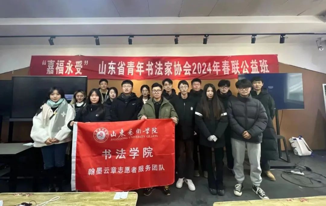 1月30日至2月1日,书法学院翰墨云章志愿者服务团15名志愿者参加了由山东省青年书法家协会举办的“嘉福永受”2024春联公益班志愿服务活动。志愿者们作为授课老师手把手教授学员们握笔姿势、书写方法,从一笔一画书写到春联的选词酌句,从宣纸上的生涩练习到春联上的流畅祝福。在短暂的授课中,有针对性的精心培养,确保每位小学员切实在审美能力、认知层次、书法理论与技法等方面得到显著提升。