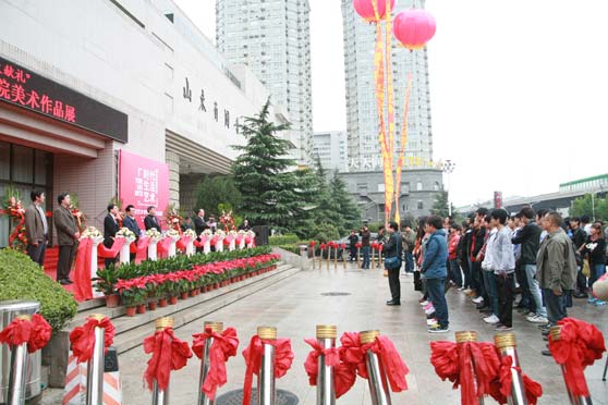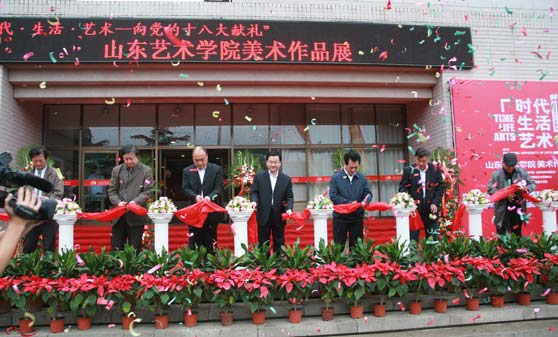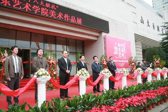 上午9时30分许,山东省人大常委会党组副书记、副主任国家森宣布画展开幕。出席开幕式的领导、嘉宾共同为“时代·生活·艺术——向党的十八大献礼”山东艺术学院美术作品展剪彩,并一同观看作品展。开幕式之后,由山东艺术学院党委书记任运河、院长张志民撰写“前言”的《“时代·生活·艺术——向党的十八大献礼”山东艺术学院美术作品展集》同时发布。