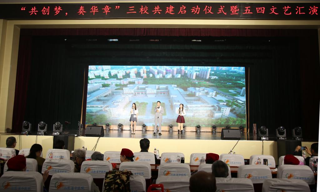 近日,“共创梦 奏华章”五四文艺汇演暨山东师范大学、山东中医药大学、山东艺术学院三校共建启动仪式在山东中医药大学千佛山校区礼堂举行。山东省人民政府原副省长谢玉堂,山东省委第一巡视组原副组长、省委组织部离退休干部第一党支部副书记戴方兰,山东省人民政府办公厅一级调研员赵志刚,我校党委委员、副院长苏茂兴等出席活动并观看演出。