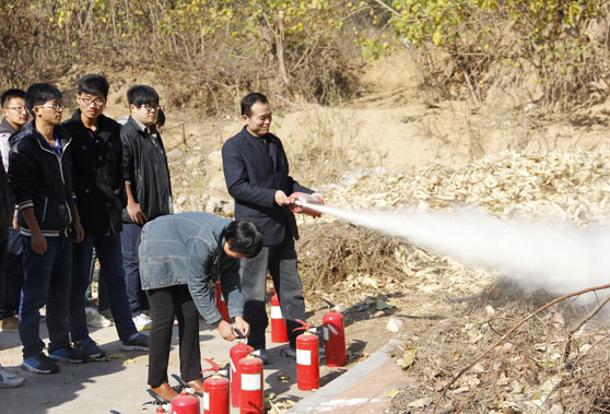 在保卫处有关工作人员的指导和现场示范下,大家学习灭火器的性能、使用方法。随后,参演人员逐人逐次进行了操作。同学们纷纷表示,这种演练既环保,又确实学到实用的东西,巩固了消防知识,亲身经历了这次消防现场演练后,如果以后发生火灾,也能开展自防自救。