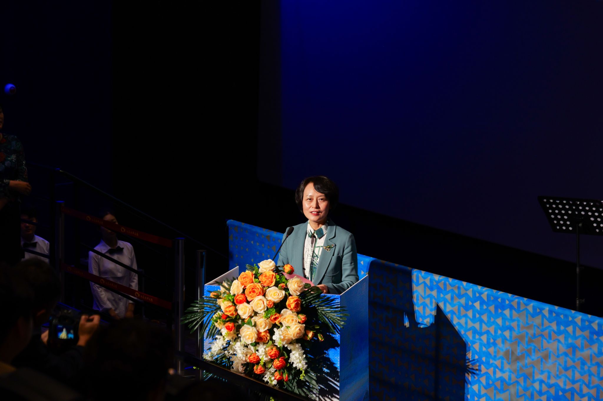 徐梅在致辞中代表承办方向莅临大会的各界嘉宾朋友表示欢迎。她认为,本次大会切中时代脉搏,是推动艺术与科技深度融合、激发创新活力的重要平台。山东艺术学院作为国内重要的艺术人才培养基地,始终致力于打造文化“两创”实践研究高地,始终将“艺术+科技”融合视为服务国家战略、赋能社会文化进步的重要路径。面对时代变革,学校积极探索艺术与科技的交叉融合,坚持“坚守与革新并重”,系统构建“人文为魂、科技为翼”的发展新格局,加强跨界协作,汇聚发展合力,共同探讨 AI 时代艺术教育的重大命题。
