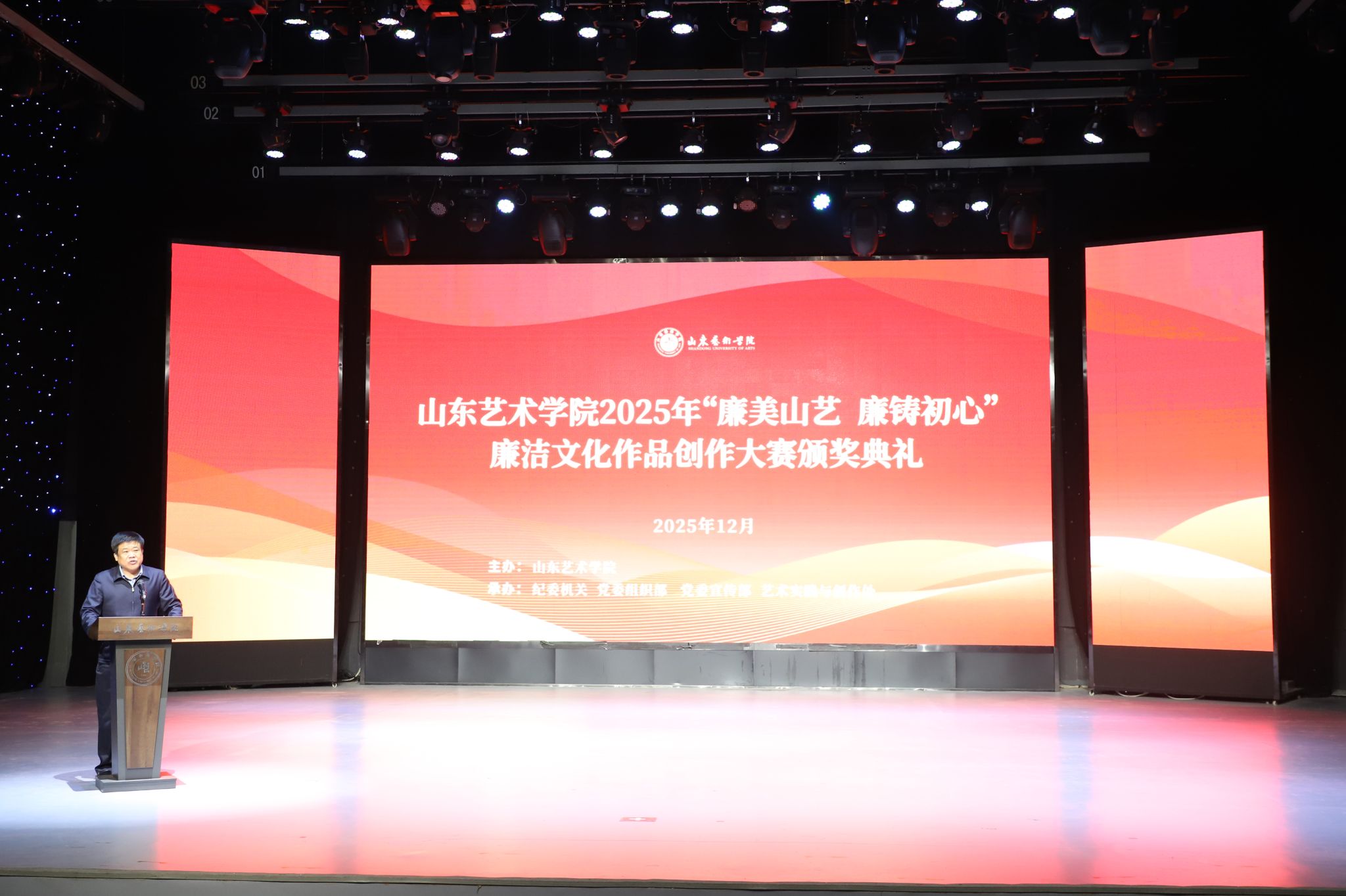 12月16日,学校2025年“廉美山艺 廉铸初心”廉洁文化作品创作大赛颁奖典礼在长清校区举行。学校党委书记徐梅,党委副书记苏茂兴,党委委员、纪委书记、省监委驻学校监察专员周立志,党委委员、宣传部部长孔宪坤出席活动。