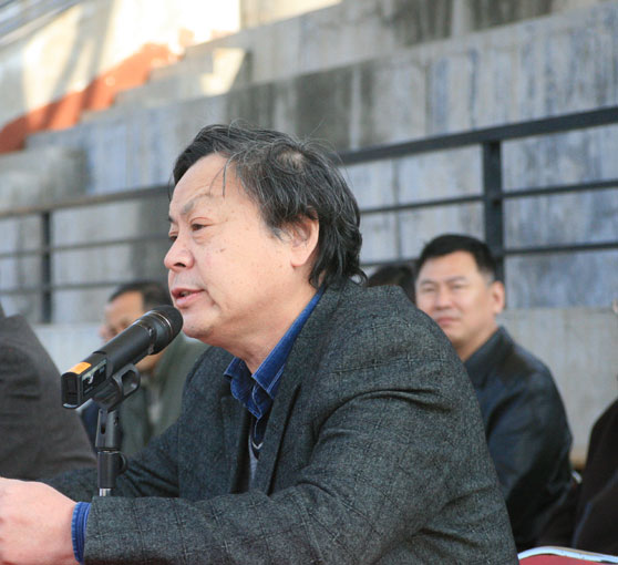 闭幕式上,大会总裁判长孙会山同志宣布竞赛成绩。