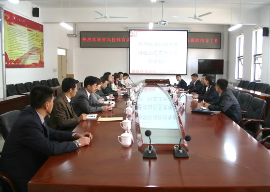 10月20日、21日,山东省教育厅高校体育课程建设检查评估专家组一行四人来到我校,对我校体育课程建设工作进行检查评估。20日上午,汇报会在长清校区办公楼二楼会议室举行。专家组组长、山东工商学院体育教学部主任刘英辉,专家组成员、临沂大学体育学院院长奚凤兰,专家组成员、山东建筑大学教务处副处级督导员张大伟,专家组秘书、山东中医药大学体育学院教师袁新峰,我校副院长刘大力及相关部门负责同志参加会议。汇报会由副院长刘大力主持。