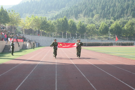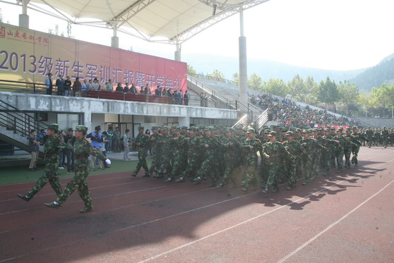 9月26日上午,我校2013级新生军训汇报暨开学典礼在长清校区体育场隆重举行。校党委书记李宗伟,院长张志民,济南军区工程维护团副参谋长来光祖,副院长刘大力、刘晓静、高启光在主席台前排就座。各二级学院、各部门负责人在主席台就座。大会由副院长刘大力主持。
