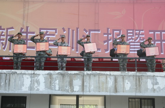 副院长高启光宣读了军训表彰决定。学校领导和部队首长为军训先进集体和先进个人代表颁了奖。