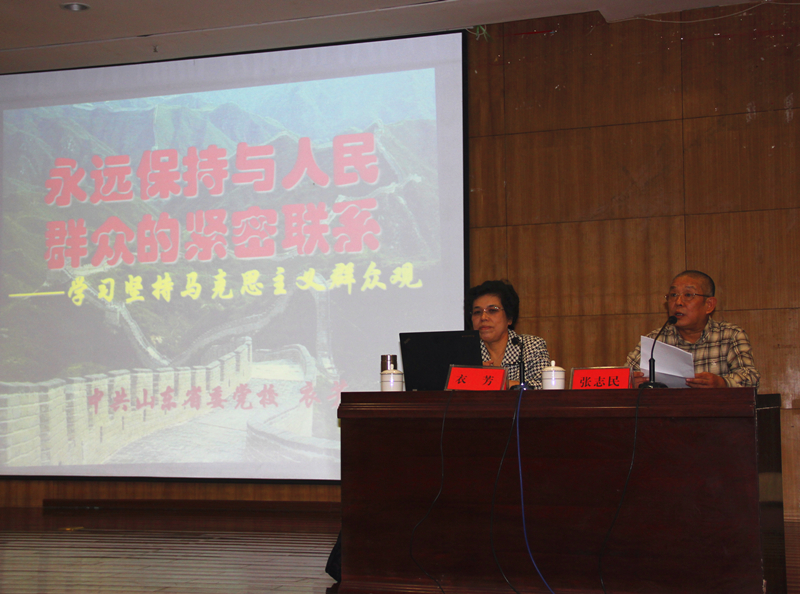 学习教育是开展党的群众路线教育实践活动的首要环节,也是践行党的群众路线的重要途径。为进一步深化和巩固前期学习效果,增强贯彻党的群众路线的自觉性,为扎实做好整个教育实践活动打下坚实的思想基础,9月27日下午,学校又特别邀请省委党校原副校长、正厅级巡视员衣芳教授,作了题为《永远保持党与人民群众的紧密联系》的专题辅导报告。报告会由党委副书记、院长张志民主持,校党委书记李宗伟,副院长刘大力、刘晓静及学校科级以上干部、辅导员、教工党员、学生党员和入党积极分子代表听取了报告。