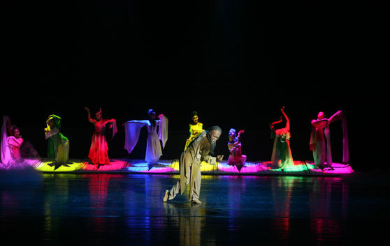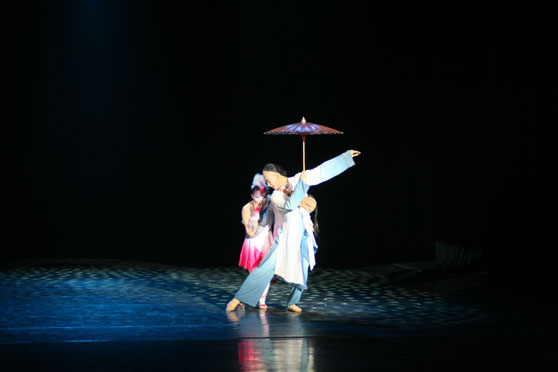 舞剧《柳泉寻踪》的排练与演出过程充分体现了“学院派”风格,主创人员和演员均为我校舞蹈学院的青年教师和学生,属于我校真正意义上的原创剧目。在目前舞剧创作高投入、大制作、经常几千万投入的编创形势下,舞剧《柳泉寻踪》力求简约,以巧取胜,突出艺术构思与创意,力图通过艺术创作的二次加工达到强烈的艺术效果,是一部典型的“小投入、大制作”的优秀剧作。