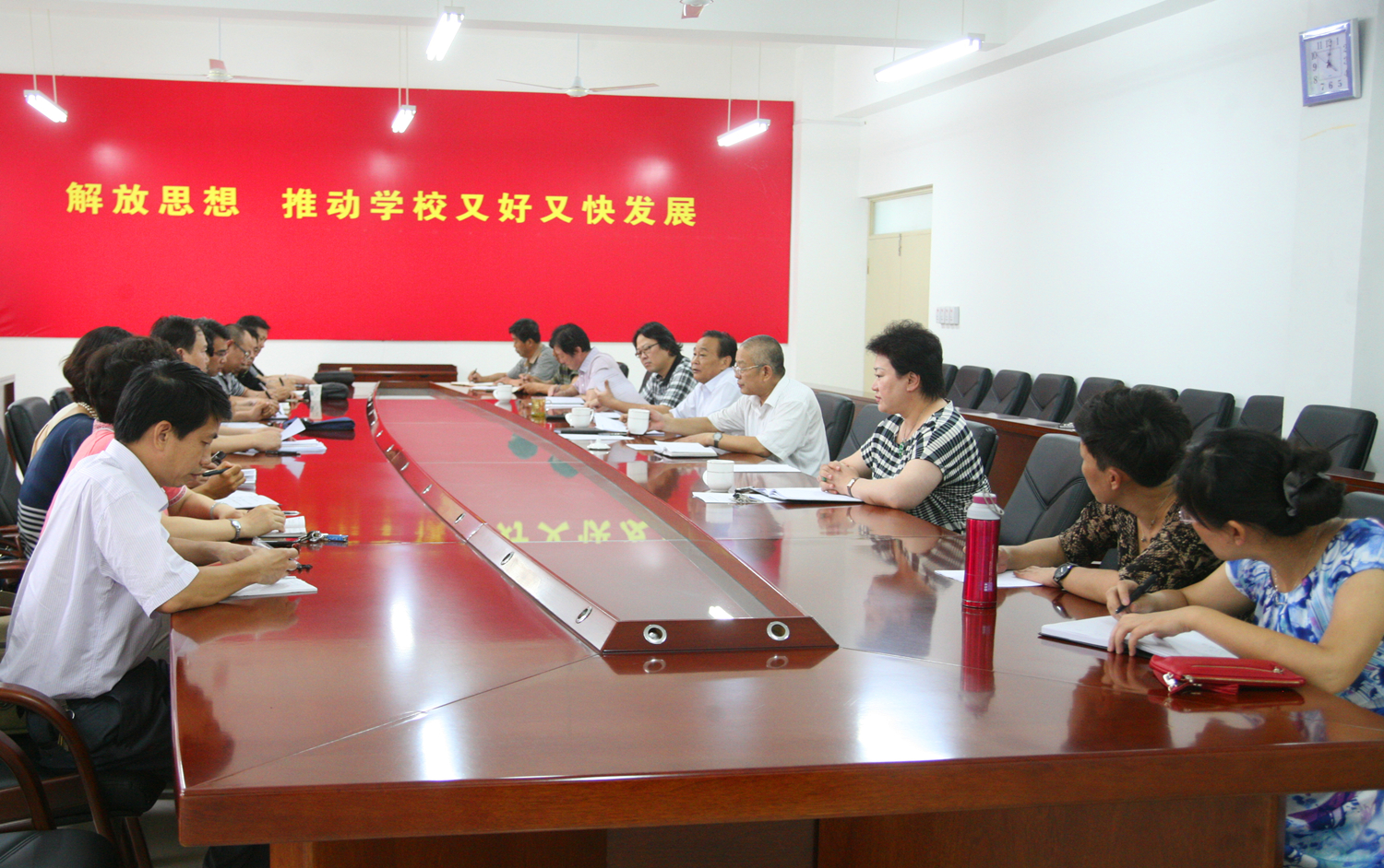 学校领导班子成员在学习讨论中一致认为,开展党的群众路线教育实践活动是我们党在新形势下坚持党要管党、从严治党的重大决策,是顺应群众期盼、加强学习型服务型创新型马克思主义执政党建设的重大部署,是推进中国特色社会主义的重大举措,对保持党的先进性和纯洁性、巩固党的执政基础和执政地位,对完成十八大确定的奋斗目标,具有重大深远意义。要结合学校实际,认真抓好学习和贯彻落实。