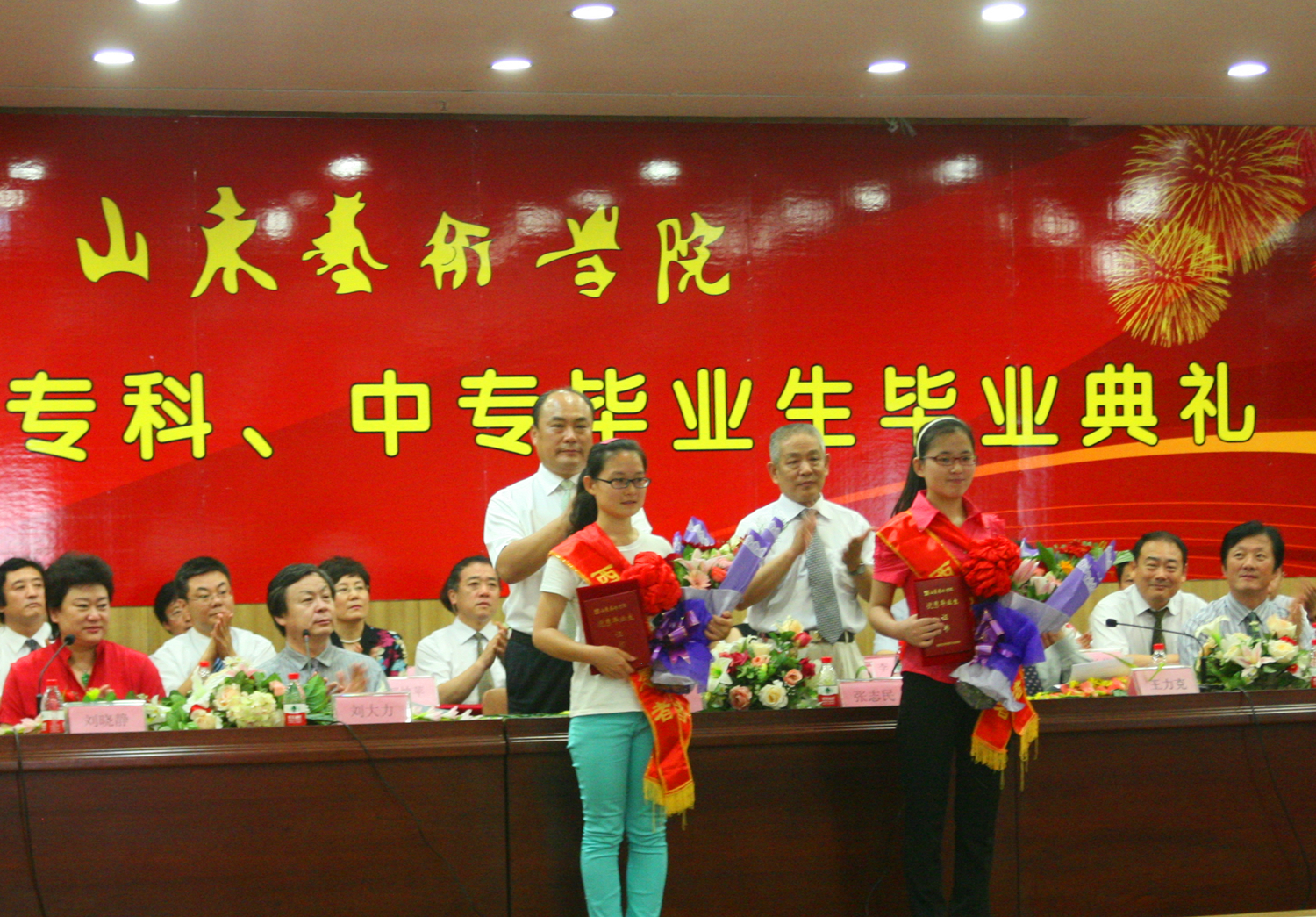 毕业典礼上,刘大力副院长宣读了《关于表彰2013年优秀毕业生的通报》,刘晓静副院长宣读了《关于授予王秀秀、徐扬同学“山东艺术学院优秀毕业生”荣誉称号的通报》和《关于授予王秀秀、徐扬同学“山东艺术学院优秀青年志愿者”称号的决定》。校领导对我校优秀毕业生和志愿服务西部的两位同学进行了表彰并颁发证书。