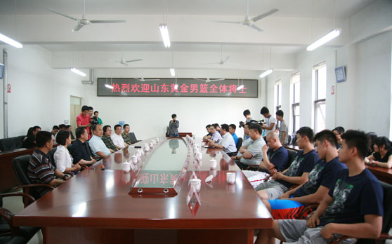 山东黄金男篮一行12人,包括俱乐部总经理卢长华,主教练巩晓彬,助理教练鞠维松、杨文海,总经理助理范泽,队员孙杰、曹振华、吴轲、王汝恒、陶汉林、许家晗、杨越 。下午3点30分,山东黄金男篮一行抵达长清校区,学校党委书记任运河、副院长王力克在办公楼二楼会议室与山东黄金男篮一行座谈。党办院办、团委、公共课教学部、成教职业学院负责同志及学生代表参加座谈会。座谈会由王力克副院长主持。