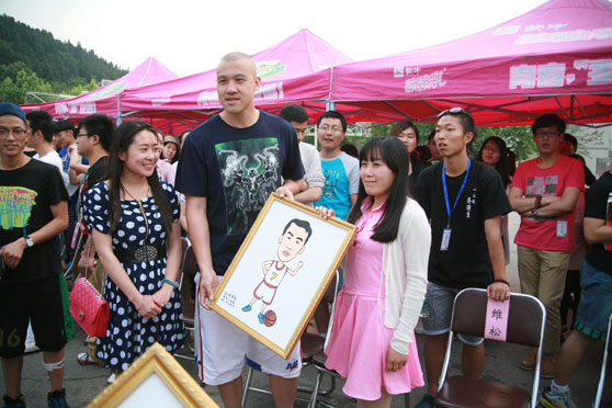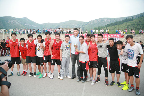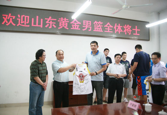 5月16日,山东黄金男篮将士一行12人走进我校长清校区,与学校领导及师生座谈,参观学校馆藏,观看我校2013年“艺苑杯”篮球赛决赛,并同学生互动交流。