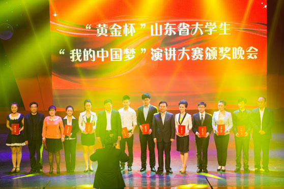 4月28日晚,由中共山东省委高校工委主办、我校承办的“黄金杯”山东省大学生“我的中国梦”演讲大赛颁奖晚会在我校文东校区综合楼艺术剧场举行。