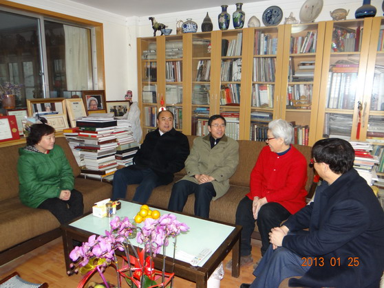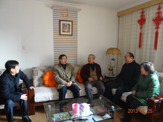 在新春佳节来临之际,省委高校工委纪工委书记张圣中、干部处处长邢桂强、纪工委副书记张洪英一行三人,在我校党委书记任运河及相关部门负责人陪同下,走访慰问了我校老领导李健葆、老教授单应桂。 1月25日上午,高校工委领导分别来到已退休的原院长李健葆和著名画家、80岁高龄的单应桂教授家,询问了老领导、老教授的身体、生活状况,对老领导、老教授为艺术学院的发展建设乃至我省的教育事业、艺术文化建设做出的贡献表示肯定和感谢,并代表高校工委向老领导、老教授拜年。 (供稿/照片:离退休工作处 编辑:李维虎)