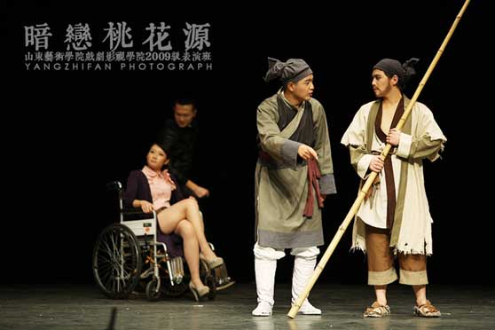 12月19至24日晚,戏剧影视学院2009级表演班毕业大戏话剧《暗恋桃花源》在我校文东校区综合楼三楼艺术剧场上演。党委书记任运河与相关单位负责人及师生观看演出。