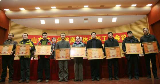会上,刘大力副院长宣读了《关于表彰优秀老同志和离退休干部工作先进集体、先进工作者的通报》,35名优秀老同志、9个先进集体、18名先进工作者受到表彰,学校领导为其颁奖并合影留念。