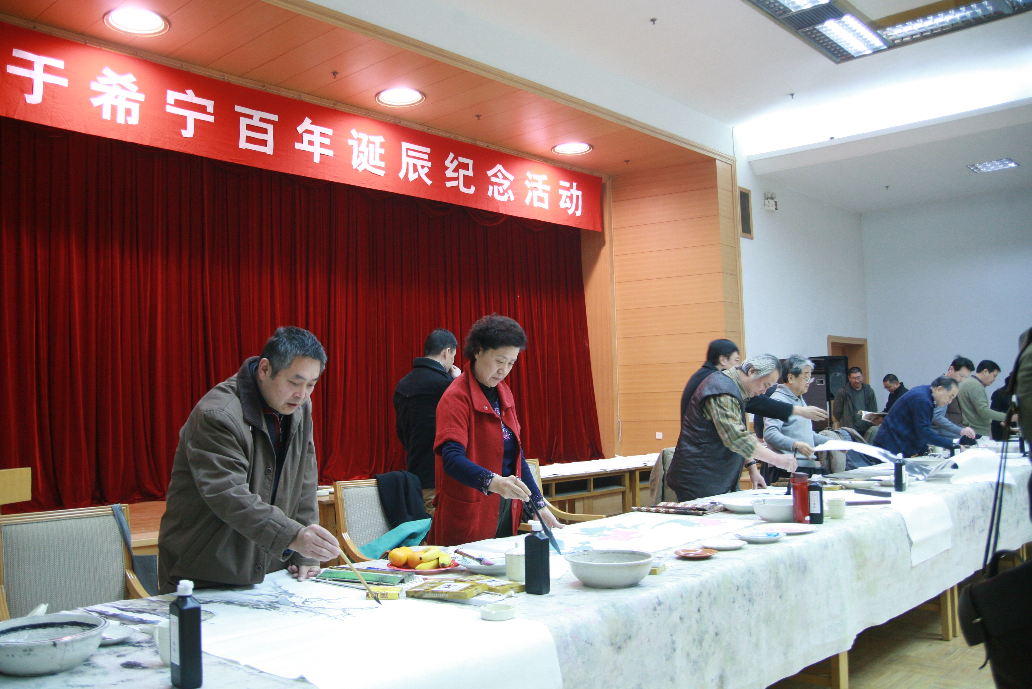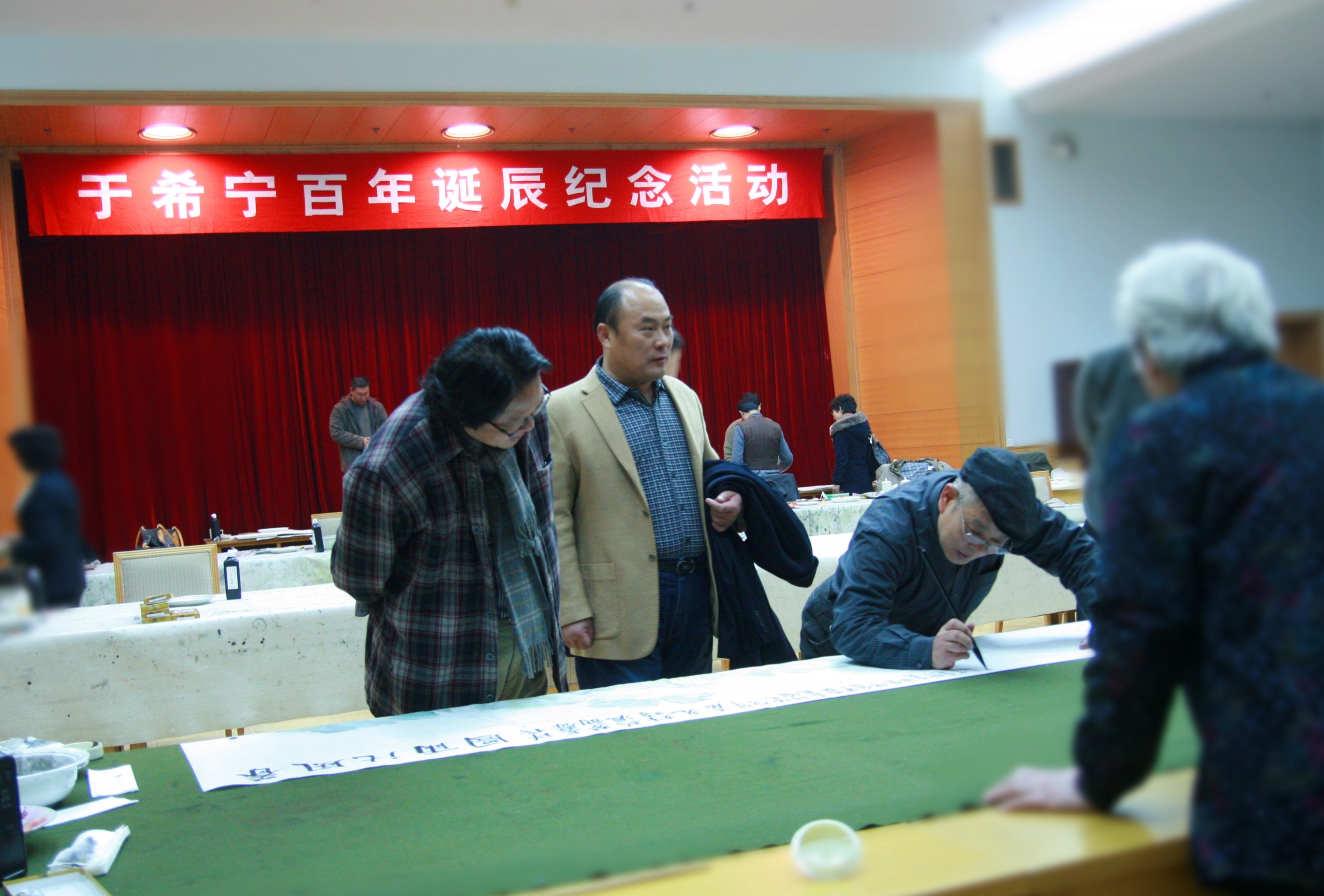 11月15日下午,为纪念于希宁诞辰100周年,山东艺术学院在南郊宾馆举办了一场书画笔会纪念活动。学校党委书记任运河、院长张志民、副院长王力克出席活动。于希宁先生家属代表、省人大常委会人事代表室付新元主任和我校沈光伟教授,特邀校外书画名家郭志光、张宏宾、卢洪钢、尹延新、丁宁原,我校知名书画家单应桂、谭英林、陈凤玉、梁文博、王晓晖、刘玉泉、张丽华、韩菊声、李继民、马麟春和青年教师代表张宜、林兵、陈涛等20位于希宁先生生前的好友、同事、学生齐聚一堂,参加了此次纪念活动。
