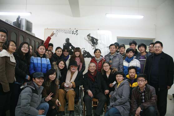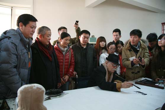 11月27日下午,中华两岸文化艺术基金会会长、中国孔学会、中华伦理教育学会会长李奇茂先生在李奇茂美术馆(山东高唐)负责人的陪同下来我校访问,张志民院长与来访客人举行座谈,党办院办相关负责同志、美术学院国画系师生参加座谈。座谈会由张志民院长主持。