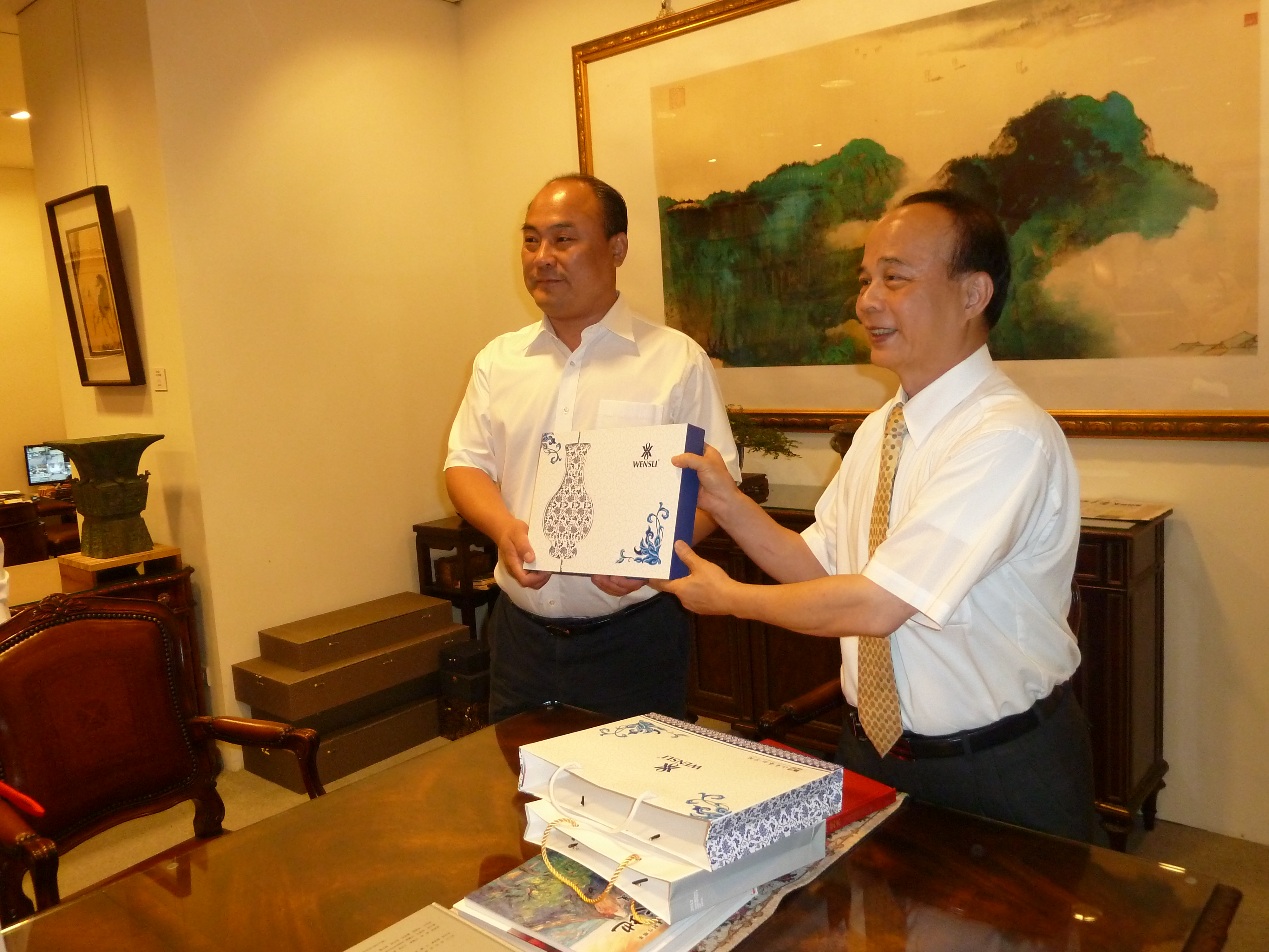 任运河书记与台湾长流美术馆馆长黄承志先生互赠礼物