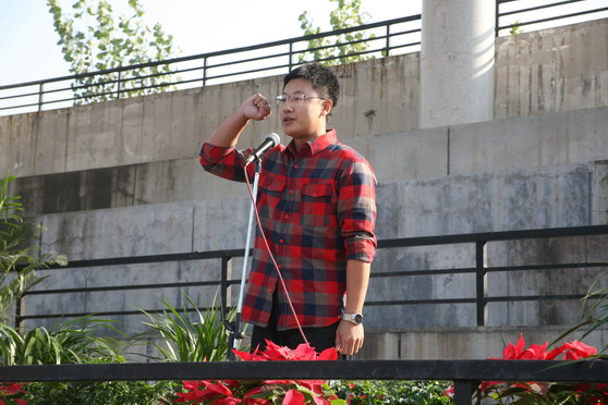 传媒学院范林同学、裁判员于洋老师在开幕式上分别代表运动员、裁判员宣誓。