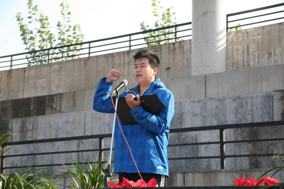 院长张志民在开幕式上致辞。张志民院长讲到,这次运动会是一年一度的增强体质、增进友谊、加强团结、促进发展的全校性体育盛会,同时也是对我校体育教学工作、对我校师生精神面貌和综合素质进行大检阅的盛会。他希望全体师生在本次比赛中发扬文明有序、积极健康的体育风尚,希望全体教练员、裁判员和工作人员努力工作、公平公正、尽职尽责,希望全体运动员听从指挥、服从裁判,在比赛中坚韧顽强、拼搏进取、赛出风格、赛出水平、赛出成绩,把运动会开得“隆重、热烈、团结、振奋”。