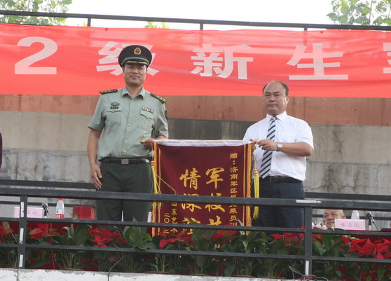 9月24日上午,我校长清校区操场彩旗猎猎,军乐嘹亮,2012级新生军训汇报暨开学典礼隆重举行。校党委书记任运河,院长张志民,副院长刘大力、王力克、刘晓静、高启光以及济南军区坦克乘员训练基地副政委侯宗运在主席台前排就座。大会由副院长刘大力主持。学校相关职能部门及各二级学院主要负责同志在主席台就座。
