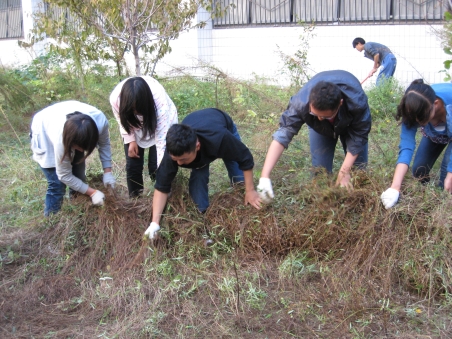 为了美化校园,培养新生对校园的热爱,培养新生的集体主义和团结协作的精神,9月28日上午,艺术文化学院党总支、团总支组织艺术文化学院2012级新生在艺文楼“天井花园”进行义务除草劳动。