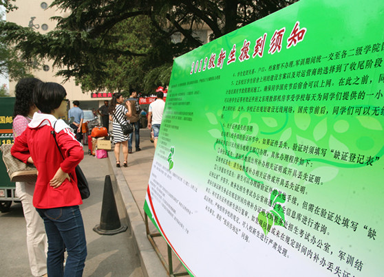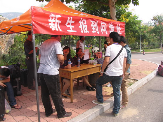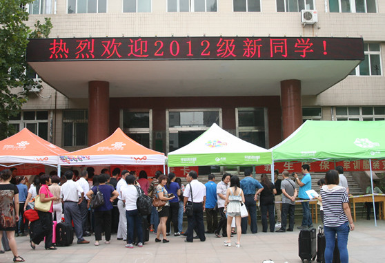 9日清晨,学校迎新工作人员一大早便来到工作场所,等待前来办理手续的新生。学校两校区打出了“热烈欢迎2012级新同学”、“珍惜新起点,笑迎新生活”、“金秋送爽喜迎八方学子、丹桂飘香共祝美好明天”等欢迎标语,长清校区全彩屏向新生和家长播放学校宣传片,醒目的“新生报到须知”和“新生报到流程”等宣传板,都营造出了今年迎新工作严谨喜庆热烈的氛围。