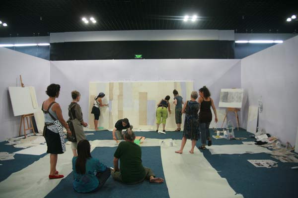 8月16日,参加“齐鲁巡礼——西方画家眼中的山东”大型系列艺术创作济南站活动的法国游记画家们来到山东博物馆,开始为济南新建美术馆绘制巨幅作品的室内创作活动。