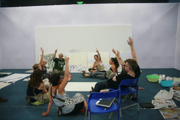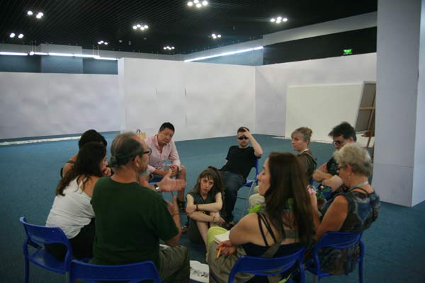 此前,10位法国画家经过10多天的写生和多次艺术交流,探讨了创作的基本构思和创作方式。在山东博物馆,画家们在之前探讨和写生的基础上,又进行了深入的讨论和交流,并发扬艺术民主,以举手表决的方式确定了创作的思路和方式。在创作现场,记者采访了主创尚巴尔·大卫先生。据他介绍,创作将以“西方画家眼中的济南”为主题,采用绘画艺术和拼接艺术相结合的方式,以10位法国画家在济南10多天的所见、所闻、感受和发现为线索,每人负责一部分,将 “水”、“山”、“城”、“人”等元素融合在一起,向世人展现“最美的济南”。