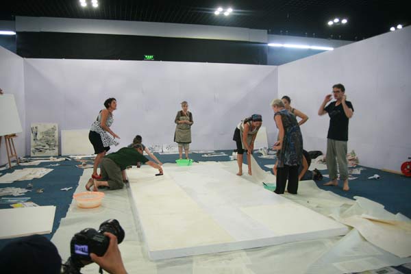 据悉,作品长4.5米,高2米,将用3天左右时间完成,并将于8月22日向媒体和公众展示。