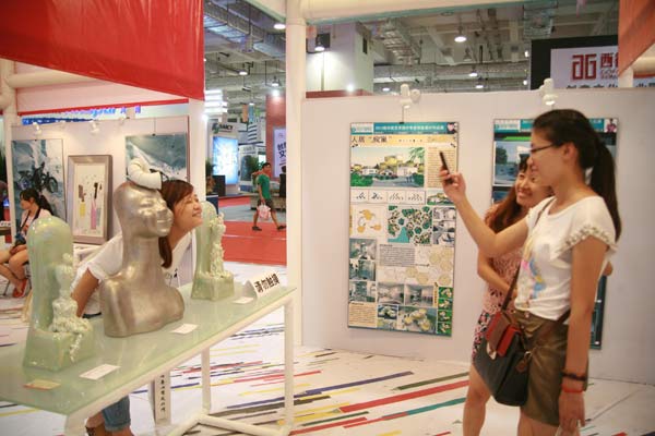 本届文博会以“创意、融合、发展”为主题,我校参加了创意设计展区的展览工作。由我校创意、设计的展区整体氛围力求简约、环保、秩序,展区本身就是一件大型的装置艺术作品,体现出新颖的创意设计理念,吸引了众多参观者的目光。展区展出我校共计77件作品,展览作品形式多样,内容丰富,涵盖艺术设计、陶艺、雕塑、舞美模型等各种类型,倾注了师生智慧和心血。一幅幅展示学院成果的展板呈现在文博会上,展示了我校作为综合性艺术院校高质量的教学、科研和艺术实践水平,扩大了学校的影响和知名度。