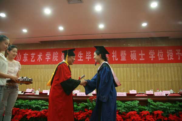典礼上,刘大力副院长宣读了《山东艺术学院关于准予2012届硕士研究生毕业的决定》和《山东艺术学院关于授予2012届硕士研究生硕士学位的决定》,准予124名硕士研究生毕业,并授予129人文学硕士学位,授予25人艺术硕士学位。