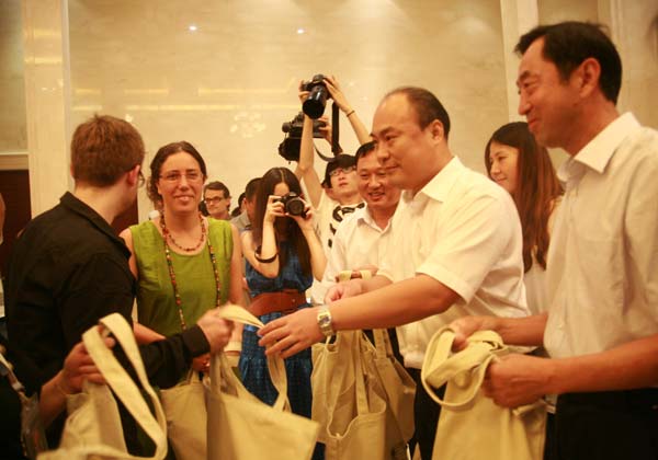 我校党委书记任运河与山东出版集团总经理张瑞云代表主办方向远道而来的艺术家们赠送了礼品;出席本次活动的各位领导和艺术家、企业家代表一起按下水晶球,共同启动了“齐鲁巡礼——西方画家眼中的山东”大型系列艺术创作第一站“泉城济南”的活动;在座的记者朋友同出席活动的艺术家进行了交流;出席启动仪式的领导、艺术家、嘉宾共同合影留念。