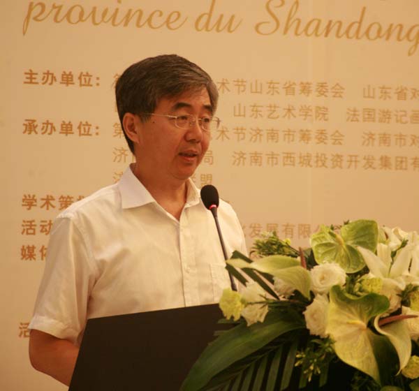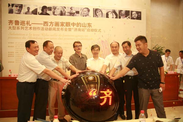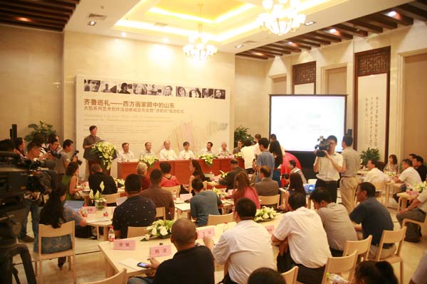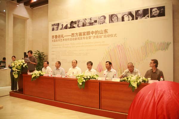 8月5日上午,由我校与第十届中国艺术节山东省筹委会、山东省对外文化交流协会、山东省文化厅、山东省文学艺术界联合会、山东出版集团、法国游记画家协会共同主办,第十届中国艺术节济南市筹委会、济南市对外文化交流协会、济南市文学艺术界联合会等单位承办的“齐鲁巡礼——西方画家眼中的山东”大型系列艺术创作活动新闻发布会暨济南站启动仪式在山东博物馆举行。