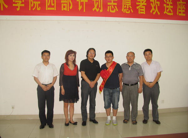 19日下午,我校2012年西部计划志愿者欢送座谈会在长清校区办公楼二楼会议室举行。副院长王力克,西部计划志愿者张斌,学工部、团委、志愿者所在二级学院负责人、各二级学院团总支书记和校志愿者协会及二级学院学生代表参加了会议。会议由团委负责人主持。