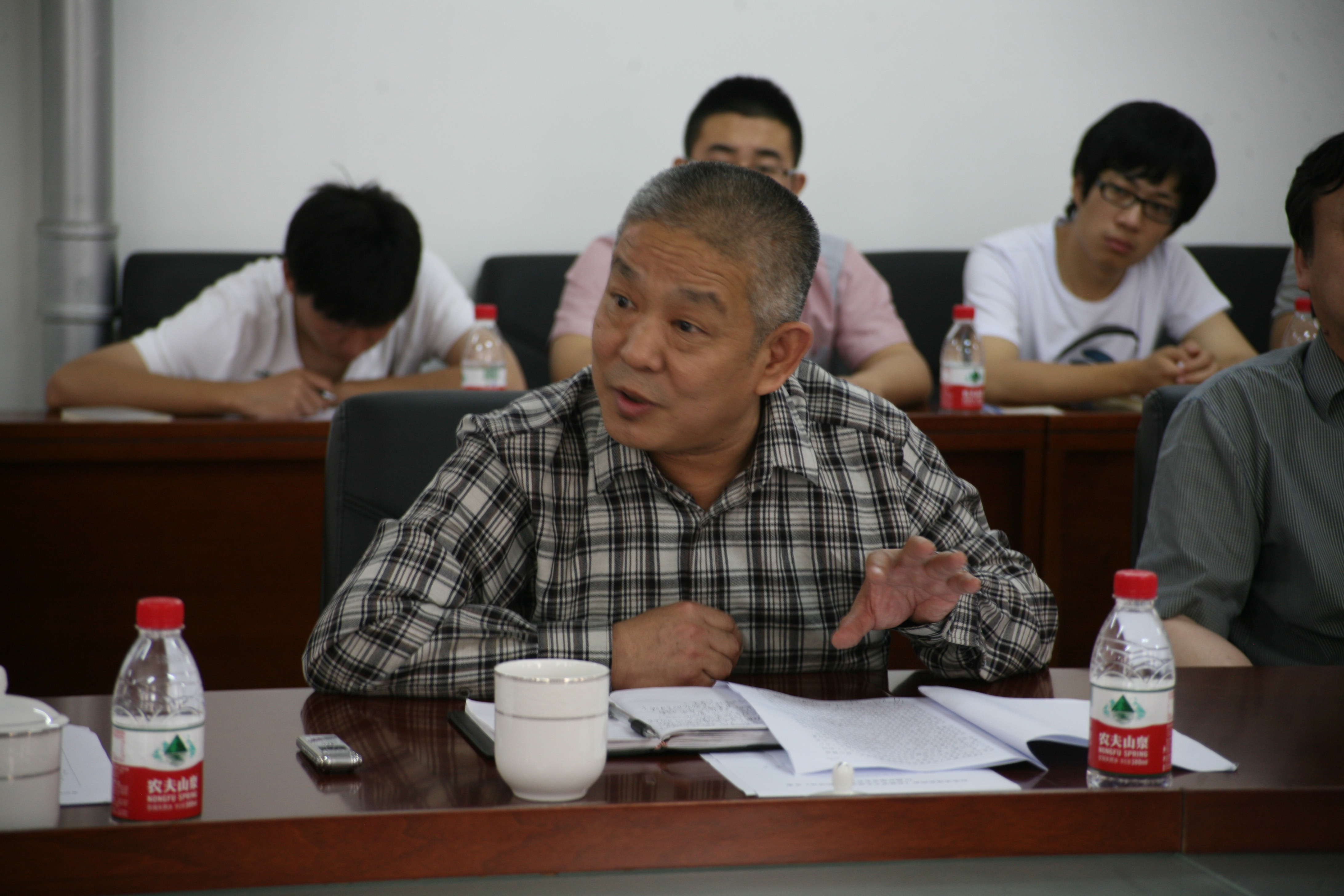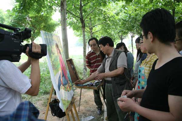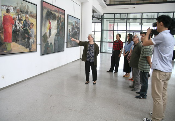 座谈会前,老专家老教授代表单应桂、李振才、安禄兴教授还观看了我校2012届研究生毕业作品展和在校园里写生的同学作品,单应桂教授现场讲解了作品表现出的深入生活、服务大众的创作原则,肯定了这种可贵精神。