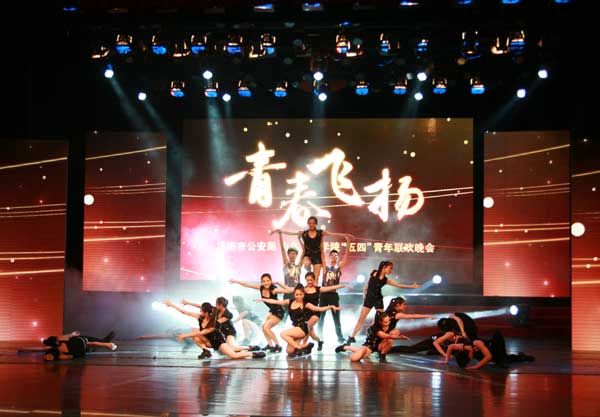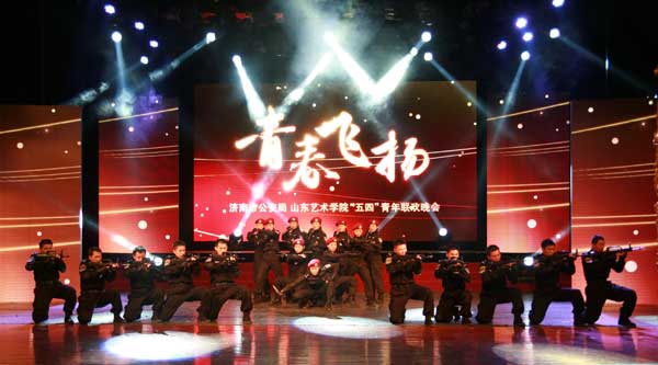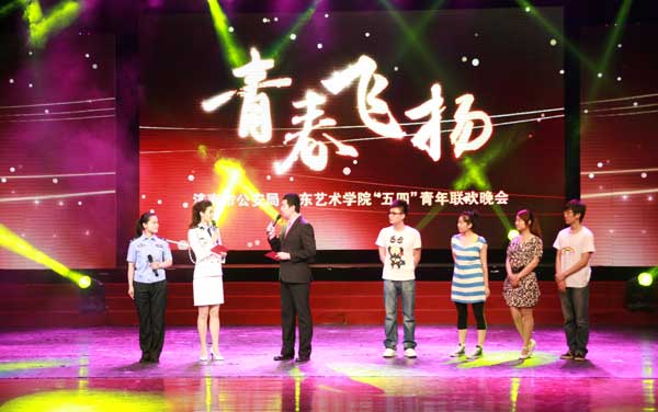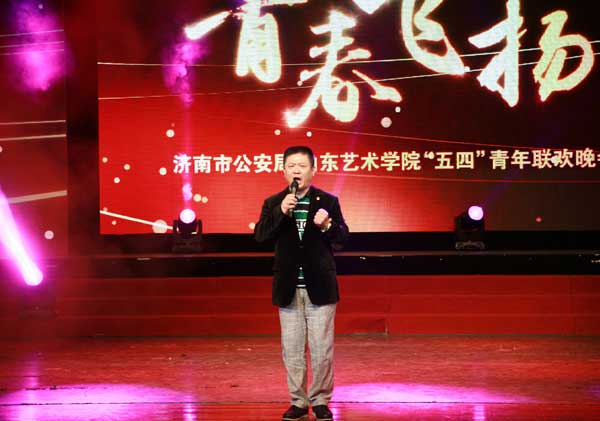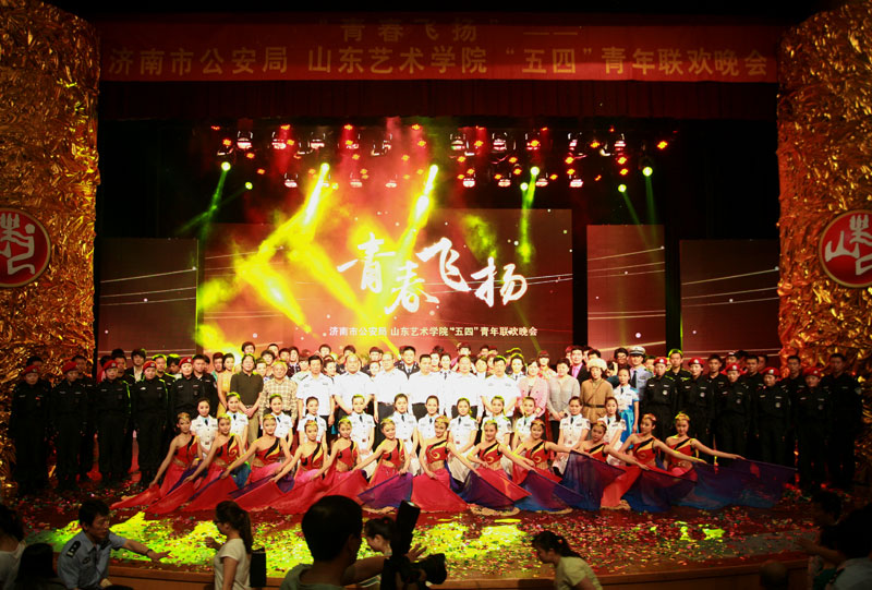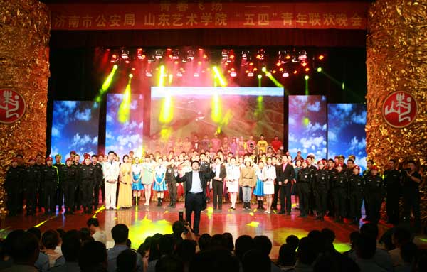 五月的花海,青春的海洋,缤纷的舞台,如歌的行板。5月7日晚上7点,我校与济南市公安局在文东校区大剧场联合举办“青春飞扬”五四青年联欢晚会。济南市委常委、市总工会主席王以才、济南市委常委、政法委书记刘杰、团省委副书记、省青联主席、山东青年政治学院党委书记张涛、济南市公安局党委书记、局长刘新云、我校党委书记任运河、院长张志民、济南团市委书记、市青联主席赵毅、市妇联主席刘勤、济南市公安局党委副书记、政委郭心敬、我校副院长王力克、刘晓静,市总工会副主席张红星、省委高校工委宣教处副处长王敬政、省公安厅宣传处副处长李新宇、原省青联副主席、省政协常委、省歌舞剧院院长雷岩等领导出席联欢晚会,省市相关部门负责同志、公安干警、我校师生近千人一同观看了演出。