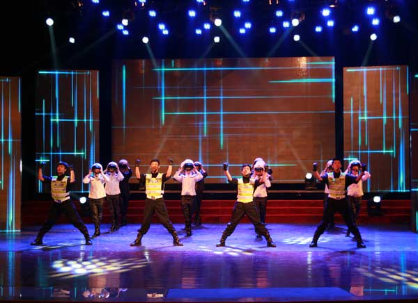 在晚会的互动环节中,一位女交警现场给我校舞蹈学院一位男生传授指挥手势,要求该同学用舞蹈动作把指挥手势原版再现,舞蹈元素的加入给指挥手势增添了几分艺术品位。毕业于我校、在济南市公安战线工作的民警也在现场和山艺的师弟师妹进行了互动交流,并饱含深情地合唱了一首《报答》,表达了对母校的眷恋和感激,晚会现场充满了和谐与温情。原省青联副主席、省政协常委、省歌舞剧院院长雷岩作为特邀嘉宾为现场观众演唱了深情、厚重的《中国故事》,表达了“中国人要过好生活,好故事好在源远长”的美好愿景。