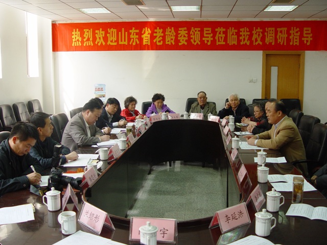 4月16日—18日,山东省老龄委办公室主任兼党组书记丁希滨、秘书处副处长单既有、事业处主任许春华、宣教处主任潘思兴、机关党委主任王金茂一行5人来到我校,针对人口老龄化的基本情况和老同志的养老需求进行了为期三天的调研。