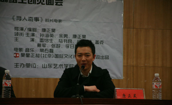 本片导演、青年电影人康正昊先生随后代表主创致辞。他首先向山东艺术学院将《寻人奇事》作为电影节的开幕影片并盛情邀请他来做现场交流表示诚挚谢意。身兼电影投资人与主创的康正昊先生与广大师生分享他对当下中国电影行业的看法,并以个人从影经历来激励年轻学子大胆尝试艺术创作。康正昊导演的致辞真情流露又幽默精彩,极富感染力。