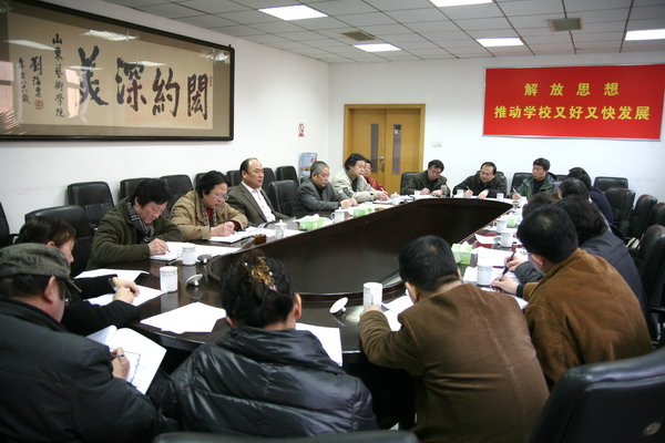 院长张志民在会上指出,今年国家和省里有很多大事,如党的第十八次全国代表大会、山东省第十次党代会、第十届中国艺术节等,有很多大事与我校的活动有密切关联。我校可以抓住机遇,充分借势,有着广阔的发挥作用的地方。今天上午省里刚刚召开了十艺节有关工作会议,其中特别强调了创作,这与我校将要举办的纪念于希宁诞辰100周年系列活动等、与我校的抓创作工作十分吻合。大家对学校2012年工作要点进行了热烈讨论并提出了很好的意见,今后要重点抓好落实,把各项工作做得更加精彩。