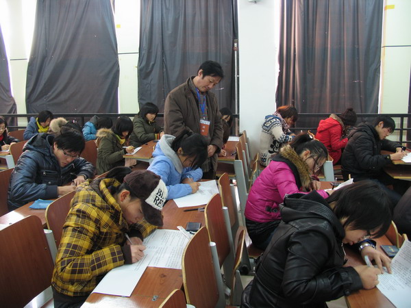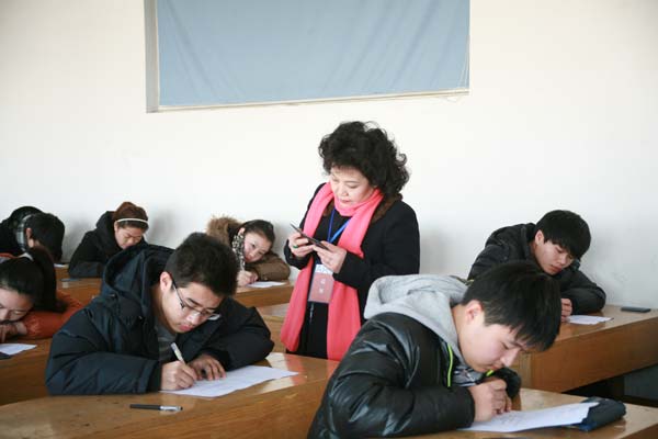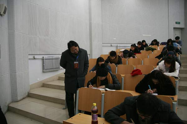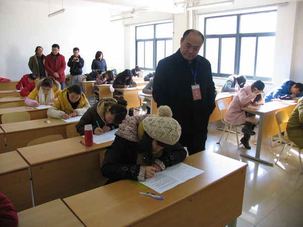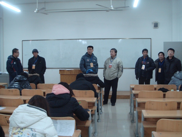 2011年12月31日下午,王力克副院长来到公共课考试考场,巡视考试工作。巡视过程中,相关部门负责人汇报了本次考试工作的考前教育、考试组织、考务安排等情况,王力克副院长对考试组织工作给予了肯定,并就加强考风考纪、增强服务教学意识等与陪同巡视同志进行了交流。教务处、学生处、公共课教学部相关负责同志陪同巡视。