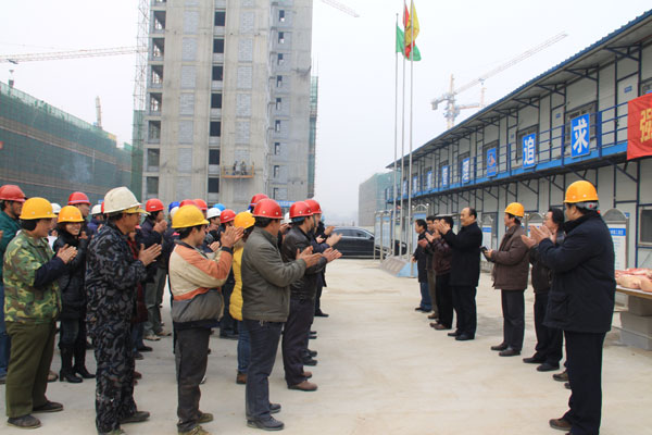 12月20日,学校党委书记任运河在副院长高启光、党办院办负责同志和教工住宅管理监督小组各小组长的陪同下来到住宅建设工地,慰问在严寒中坚持奋战的广大工友。慰问活动结束后,高启光副院长在工地现场主持召开座谈会,任运河书记出席座谈会并作重要讲话。