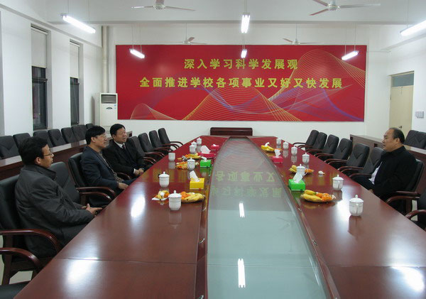 12月26日下午,党委书记任运河在长清校区办公楼二楼会议室会见了前来调研的济南市财政局局长纪宝华,长清区委副书记、区长张洪武,区委副书记孙常健一行。