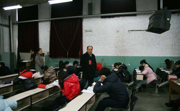 12月17日,2011年下半年全国大学英语四六级考试开始。当天上午,我校党委书记任运河在党办院办、招办、音乐学院负责同志的陪同下,亲临文东校区,巡视了部分考场,刘大力副院长在教务处负责同志的陪同下巡视了长清校区部分考场。
